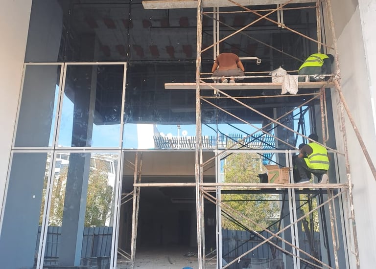 تركيب زجاج واجهات لمركز تجاري حديث.